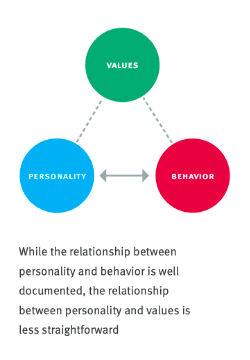 “In the world of psychology, there is a view that a correlation exists between personality traits and performance (behavior). After some research, we were also able to make some sense out of the notion that behavior could correlate to values. However, we struggled to understand the correlation between values and personality.”