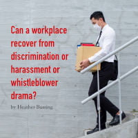 Can a workplace recover from discrimination or harassment or whistleblower drama? People’s lives and sanity depend on how you handle things. So does your company’s bottom line. So taking care of yourself as you move through the drama is the most important thing. Heather Bussing offers some good advice.